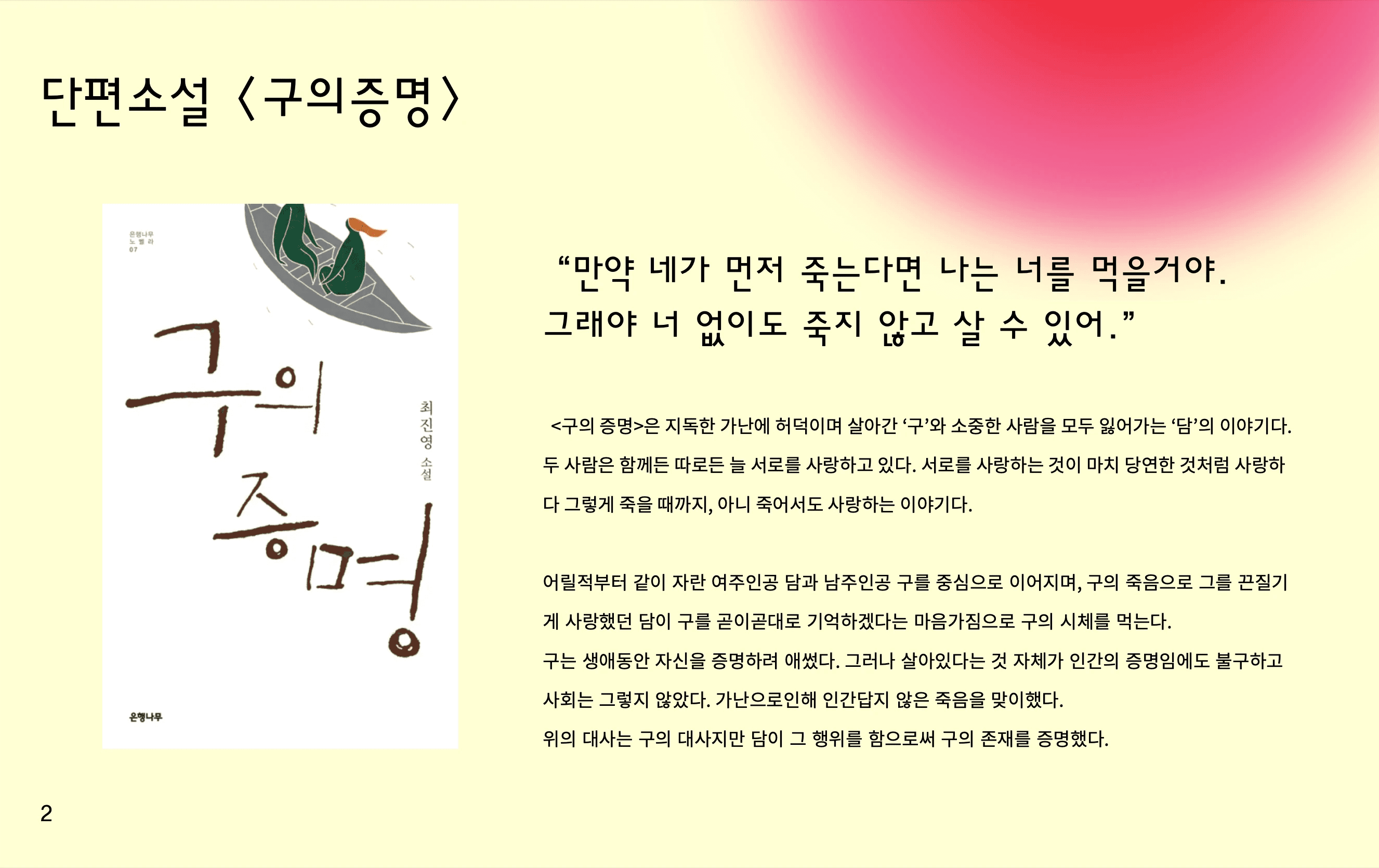 본 작품은 최진영 작가의 소설 <구의 증명>을 모티프로 한 타이틀 시퀀스다.