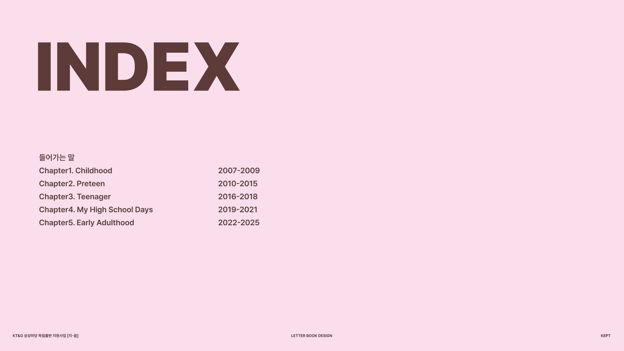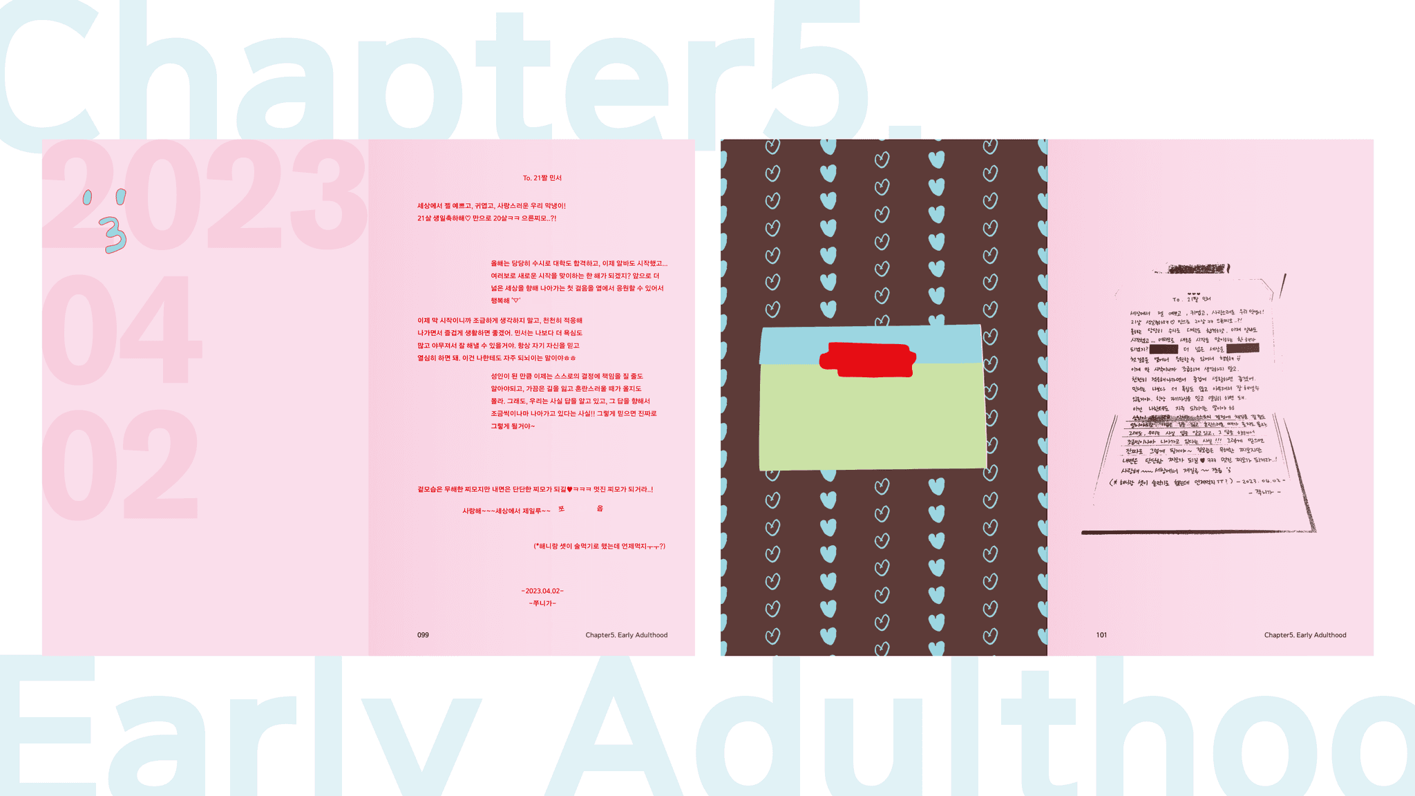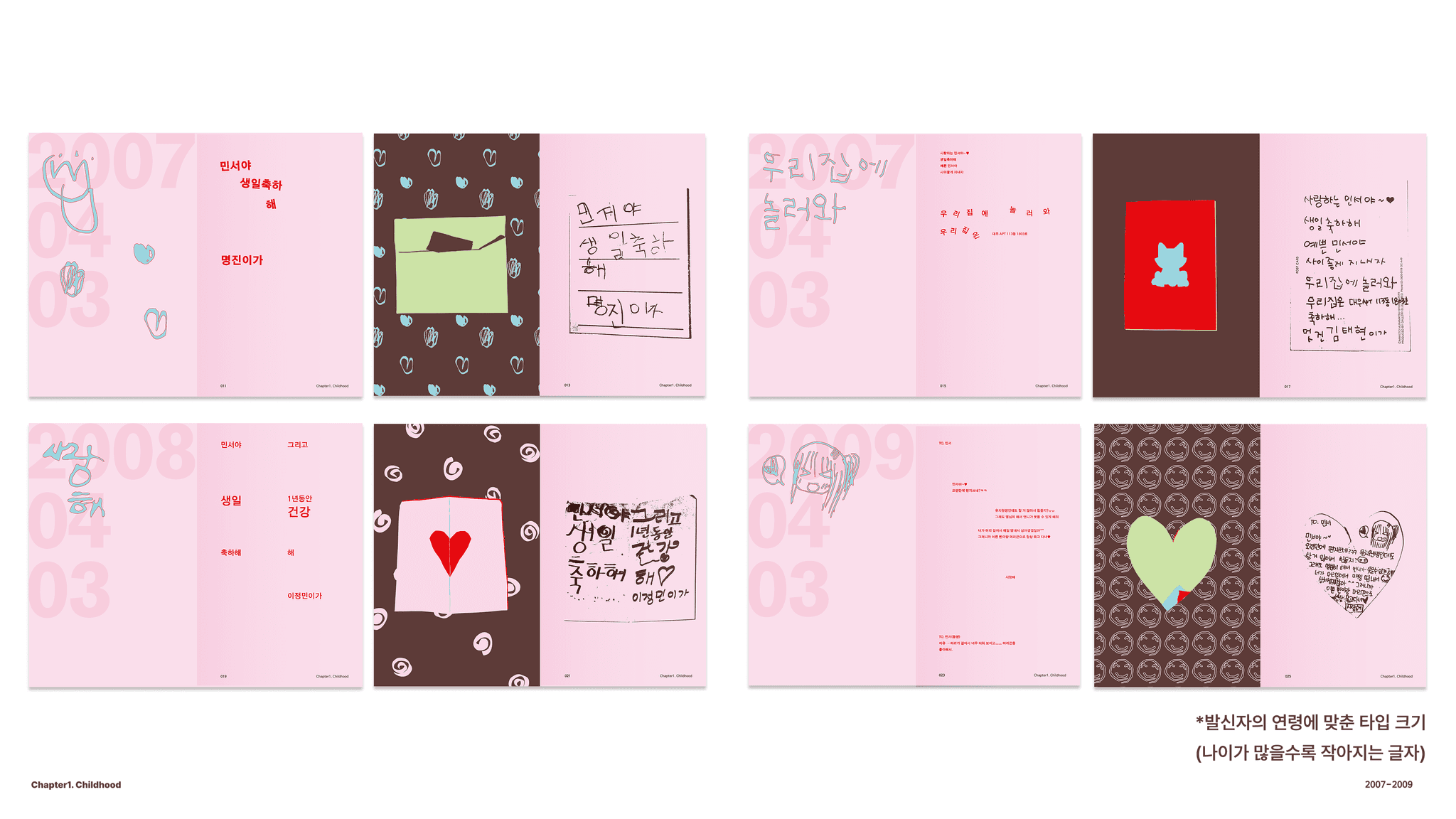 본 작품은 2003년부터 2024년까지, 작가가 유년 시절부터 성인이 되기까지 받은 편지들을 모아 엮은 레터 아카이브 북(Letter Archive Book)이다.