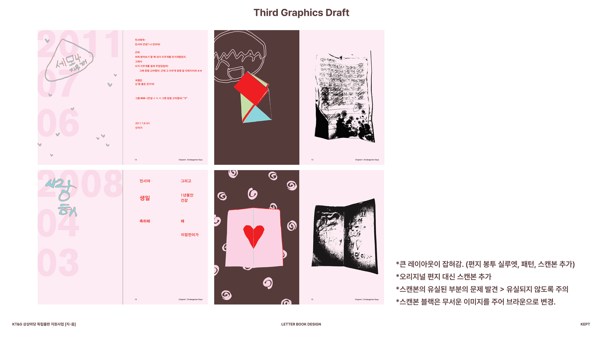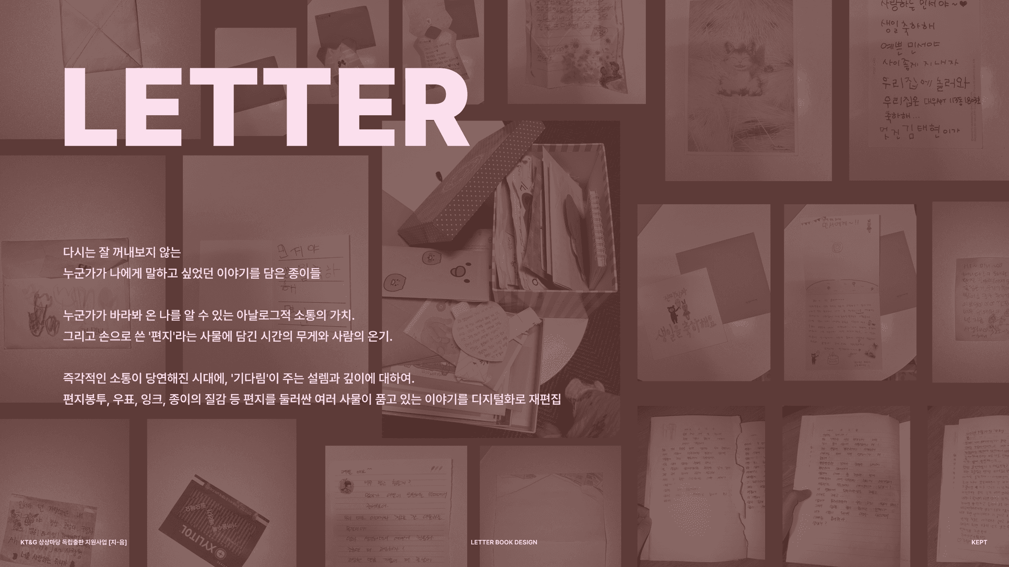 단순히 편지를 보관하는 것을 넘어, 손글씨와 그림이 가진 아날로그적 온기를 디지털 그래픽 패턴으로 재해석하여 시각화했다. 타인의 사랑이 담긴 기록들이 모여 현재의 단단한 자아를 형성했음을 보여주며, 디지털 시대에 잊혀가는 '기다림'과 '소통'의 가치를 전한다.
