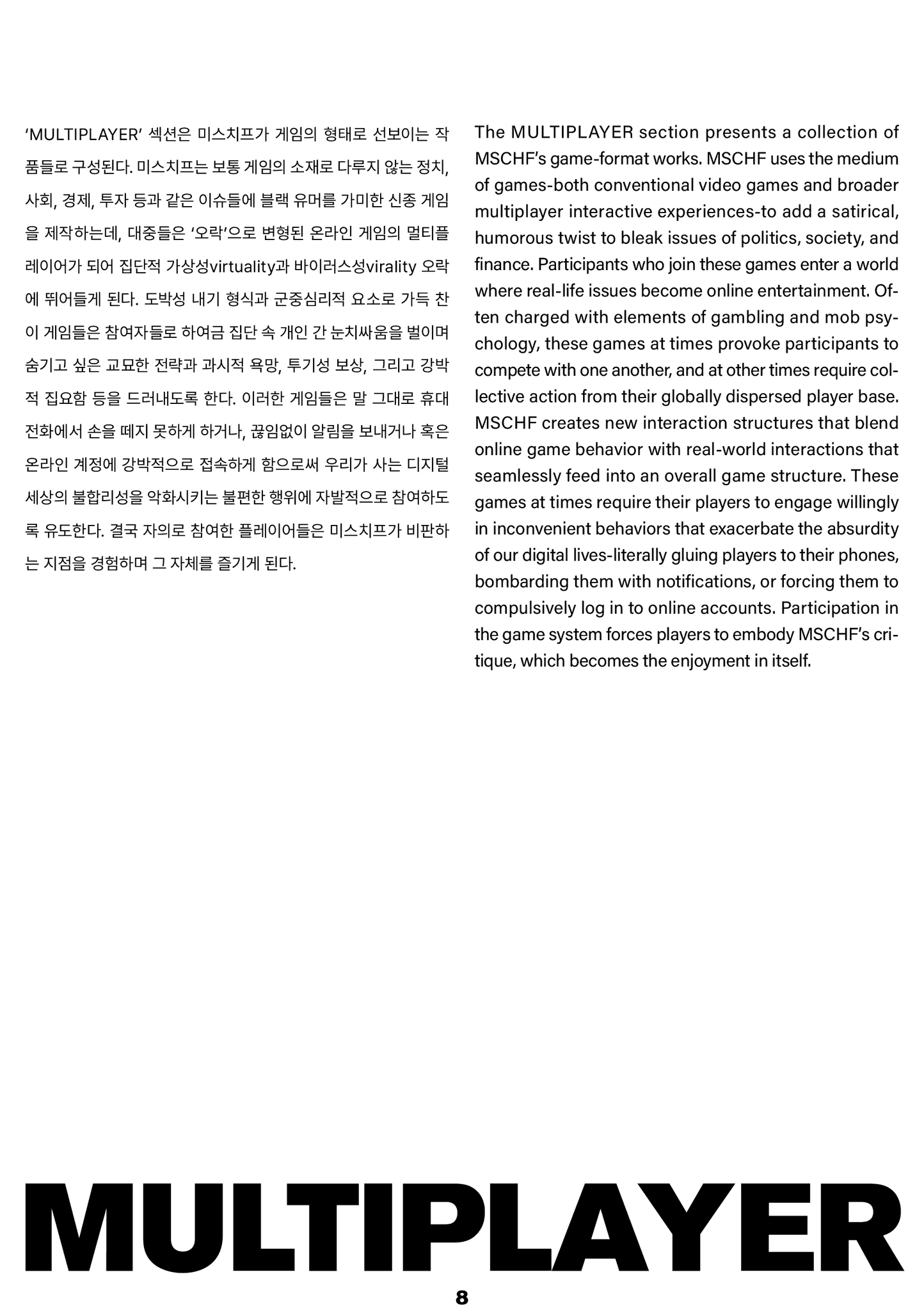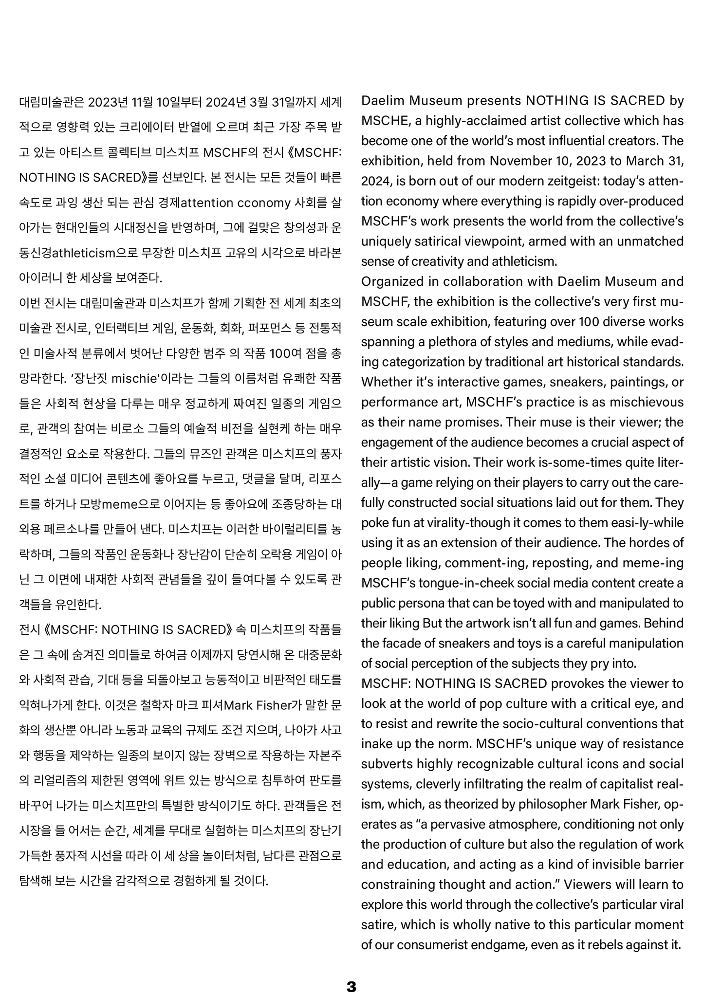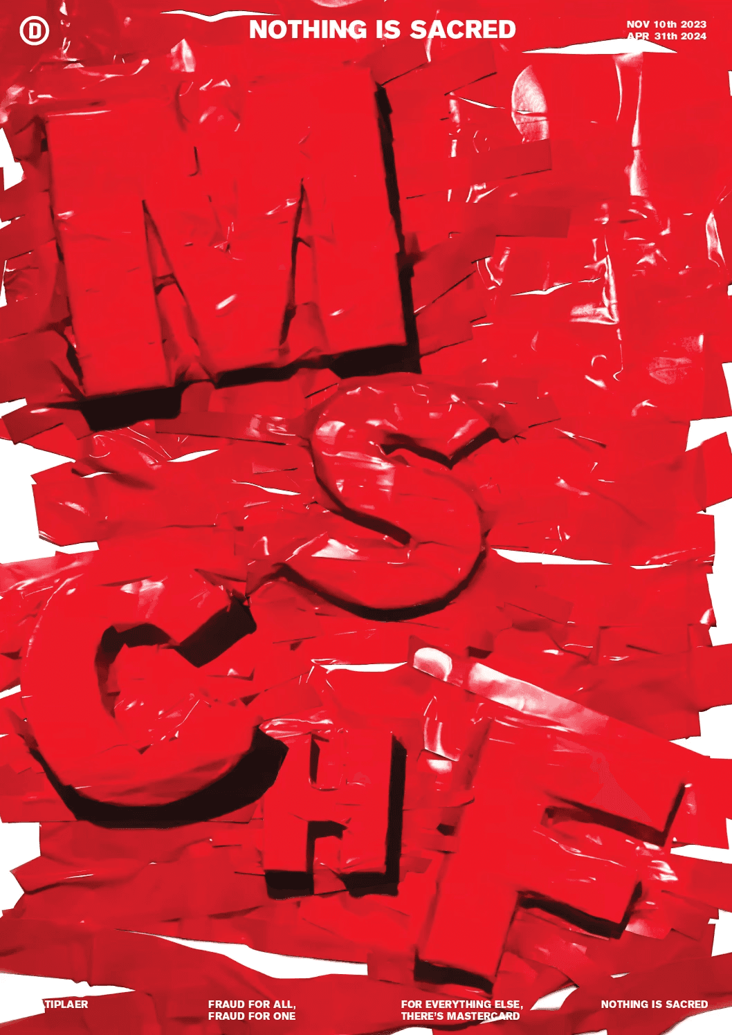 포스터 역시 이러한 전시의 성격을 시각적으로 드러내도록 기획했다. 테이프로 글자를 가려 실루엣만 보이게 연출함으로써, 장난스러운 겉모습 뒤에 숨겨진 의미를 암시했다. 또한, 미스치프 특유의 과감한 표현 방식을 반영해 호기심을 자극하고, 시선을 끌면서도 전시의 주제를 직관적으로 전달하는 데 집중했다.